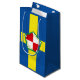 Paper Bag with design with a flag of historic county of Pembrokeshire, in Wales, Great Britain; blue azure flag with a yellow cross and white Tudor rose in the centre