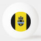 Ping pong ball with flag of city of Pittsburgh, Pennsylvania; flag with three vertical bands of black and yellow with illustration of castle and shield in the centre