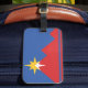 Luggage Tag with a design with the flag of Pocatello, Idaho. A blue flag with red mountains and a yellow star