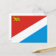 Postcard with flag of Primorsky krai, flag with diagonal tricolor of red, white and blue, with a Siberian tiger charge in the red field