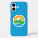iPhone 14 Case with a design with the flag of Provo, Utah. A blue flag with the Provo City logo in the centre. The logo represents the Utah lake and nearby mountain peaks with the rising sun in the background
