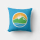 A pillow with a design with the flag of Provo, Utah. A blue flag with the Provo City logo in the centre. The logo represents the Utah lake and nearby mountain peaks with the rising sun in the background