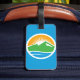 Luggage Tag with a design with the flag of Provo, Utah. A blue flag with the Provo City logo in the centre. The logo represents the Utah lake and nearby mountain peaks with the rising sun in the background