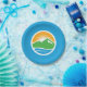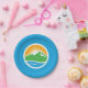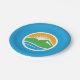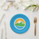 Paper Plate with a design with the flag of Provo, Utah. A blue flag with the Provo City logo in the centre. The logo represents the Utah lake and nearby mountain peaks with the rising sun in the background