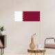 This design features the national flag of Qatar (officially known as the State of Qatar [دولة قطر]), which is a country located in Western Asia. It occupies the small Qatar Peninsula on the northeastern coast of the Arabian Peninsula. Its sole land border is with Saudi Arabia to the south, while the rest of its territory is surrounded by the Persian Gulf. The Gulf of Bahrain, an inlet of the Persian Gulf, separates Qatar from nearby Bahrain.