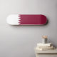 This design features the national flag of Qatar (officially known as the State of Qatar [دولة قطر]), which is a country located in Western Asia. It occupies the small Qatar Peninsula on the northeastern coast of the Arabian Peninsula. Its sole land border is with Saudi Arabia to the south, while the rest of its territory is surrounded by the Persian Gulf. The Gulf of Bahrain, an inlet of the Persian Gulf, separates Qatar from nearby Bahrain.