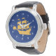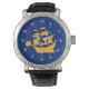 Watch with the flag of Quebec City, the capital city of Quebec, Canada. A blue flag with a white outline and a yellow ship in the centre