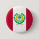 Round Button with flag of city of Raleigh, North Carolina; flag with three vertical bands of red and white with city’s seal in the centre