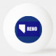 Ping Pong Ball with flag of city of Reno, Nevada; blue flag with white shape of Nevada with star symbolising Reno’s location inside the state