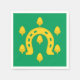 Paper napkin with design with a flag of historic county of Rutland, in England, Great Britain; green flag with acorns and a golden horseshoe in the centre