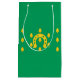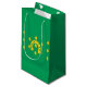 Paper Bag with design with a flag of historic county of Rutland, in England, Great Britain; green flag with acorns and a golden horseshoe in the centre