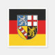 Paper napkin with flag of Saarland; design with horizontal tricolor of black, red and yellow (golden), with state’s coat of arms in the centre