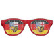Sunglasses with flag of Saarland; design with horizontal tricolor of black, red and yellow (golden), with state’s coat of arms in the centre
