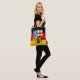 Tote bag with flag of Saarland; design with horizontal tricolor of black, red and yellow (golden), with state’s coat of arms in the centre