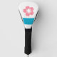 Golf Head Cover with a design with the flag of Salem, Oregon. A white and blue flag with a pink cherry blosson