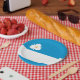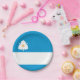 Paper Plate with a design with the flag of Salt Lake City, Utah. A blue and white flag with a white lily in the top left corner, “Utahn flag”