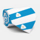 A necktie with a design with the flag of Salt Lake City, Utah. A blue and white flag with a white lily in the top left corner, “Utahn flag”