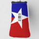 Golf Head Cover with the flag of San Antonio, Texas. A blue and red flag with white star and an illustration of Alamo in the middle
