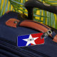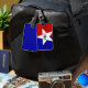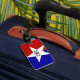 Luggage Tag with the flag of San Antonio, Texas. A blue and red flag with white star and an illustration of Alamo in the middle