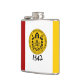 Flask with a flag of San Diego, California. A red, white, and yellow flag with the seal of the city in the centre