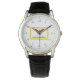 Watch with flag of city of San Francisco, California; white flag with yellow border with an illustration of a phoenix rising from flames