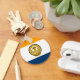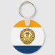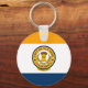 Keychain with the flag of San Jose, California. A blue, white, and orange flag with the seal of the city in the centre