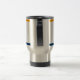 Travel Mug with the flag of San Jose, California. A blue, white, and orange flag with the seal of the city in the centre