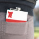 Vinyl wrapped flask with flag of city of Santa Barbara, California; flag with vertical tricolor of white, red and yellow, with illustration of a red fort in the upper left corner
