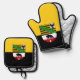 Pot Holder Set with variant flag of Saxony-Anhalt; design with two horizontal bands of yellow (golden) and black, and with state’s coat of arms in the centre
