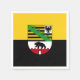 Paper napkin with variant flag of Saxony-Anhalt; design with two horizontal bands of yellow (golden) and black, and with state’s coat of arms in the centre