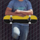 Skateboard with flag of Saxony-Anhalt; design with two horizontal bands of yellow (golden) and black