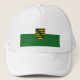 Trucker Hat with variant flag of Saxony; design with two horizontal bands of green and white, and with state’s coat of arms in the centre
