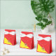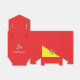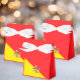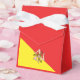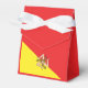 Celebrate your special event with this charming Sicilian-themed tent favor box, tied with an elegant white satin ribbon. The front features the Sicilian flag in vibrant red and yellow with the iconic Trinacria, while the back is solid red with a Trinacria icon and custom white wording for names, dates, or a short message. Perfect for weddings, birthdays, anniversaries, or Sicilian-themed parties, these boxes are ideal for holding candies, small treats, or keepsakes, adding a personalized and festive touch to your celebration.