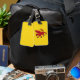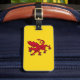 Luggage Tag with design with a flag of historic county of Somerset, in England, Great Britain; yellow flag with an illustration of a red dragon in the centre