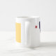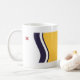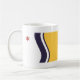 Mug with a design with the flag of South Bend, Indiana. A white, blue, and yellow flag with a red star
