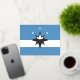 Postcard with a design with the flag of Springfield, Missouri. A blue and white flag with a black and white star in the centre