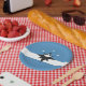 Paper Plate with a design with the flag of Springfield, Missouri. A blue and white flag with a black and white star in the centre