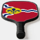 Pickleball Paddle with flag of city of St. Louis; red flag with white and blue waves and blue fleur-de-lys in yellow circle