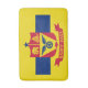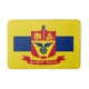 Bath mat with flag of city of St Paul, Minnesota; flag with three horizontal stripes of blue and yellow with red emblem in the centre