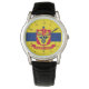 Watch with flag of city of St Paul, Minnesota; flag with three horizontal stripes of blue and yellow with red emblem in the centre