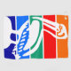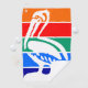 Golf Towel with a design with the flag of St. Petersburg, Florida. A flag with orange, red, green, blue, and navy blue stripes with a symbol of white pelican