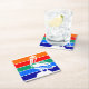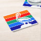 Coaster with a design with the flag of St. Petersburg, Florida. A flag with orange, red, green, blue, and navy blue stripes with a symbol of white pelican