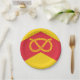 Paper plate with design with a flag of historic county of Staffordshire, in England, Great Britain; gold flag with chevron with Stafford knot