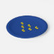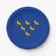 Paper plate with design with a flag of historic county of Sussex, in England, Great Britain; blue flag with six gold martlets