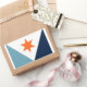 Sticker with a design with the flag of Syracuse, New York. A blue, white, and yellow flag
