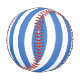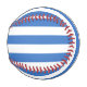Baseball with design with flag of Tallinn, capital city of Estonia; white and blue striped flag