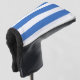 Golf putter cover with design with flag of Tallinn, capital city of Estonia; white and blue striped flag