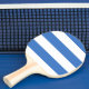 Ping pong paddle with design with flag of Tallinn, capital city of Estonia; white and blue striped flag