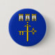 Round button with the flag of Ternopil Oblast (Ternopilska oblast, Тернопі́льська о́бласть), a blue flag with a yellow sword and key and three white towers with open gates