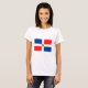 The flag of the Dominican Republic, as described by Article 96 of the Dominican Constitution, features a centred white cross that extends to the edges and divides the flag into four rectangles—the top ones are blue (hoist side) and red, and the bottom ones are red (hoist side) and blue. A small coat of arms featuring a shield with the flag design and supported by a bay laurel branch (left) and a palm frond (right) is at the centre of the cross; above the shield, a blue ribbon displays the national motto: Dios, Patria, Libertad (God, Fatherland, Liberty). Below the shield, the words República Dominicana appear on a red ribbon (this red ribbon is depicted in more recent versions as having its tips pointing upward). In the centre of the shield, flanked by three spears (two of them holding Dominican banners) on each side, is a Bible with a small cross above it and said to be opened to the Gospel of John, either to chapter one or chapter 8, verse 32, which reads Y la verdad nos hará libre (And the truth shall make you free). The blue on the flag stands for liberty, the white for salvation, the red for the blood of heroes. The civil ensign follows the same design, but without the charge in the centre. The flag was designed by the leader of the Trinitarians, the founding father (Padre de la Patria) Juan Pablo Duarte. To create distinct flags for state and civil use, the coat of arms, adopted in 1844, was placed on the state flag. The motto had been the password of the Trinitarians.
